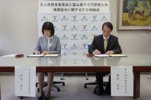 富山高等専門学校と富山県教育委員会が特別支援教育における支援技術普及を目的とした連携協力に関する覚書を締結しました。
