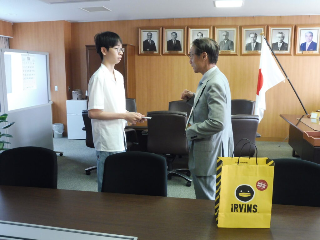 10月3日(金)には校長室を訪問し、國枝校長から歓迎と激励の言葉が贈られました。