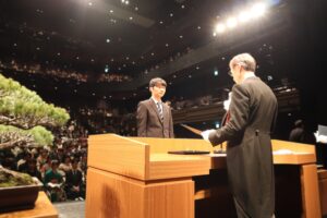 卒業証書授与 代表 電子情報工学科 谷浦 快音さん