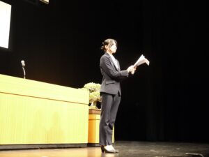 在校生総代送辞者 国際ビジネス学科 本田 彩笑さん