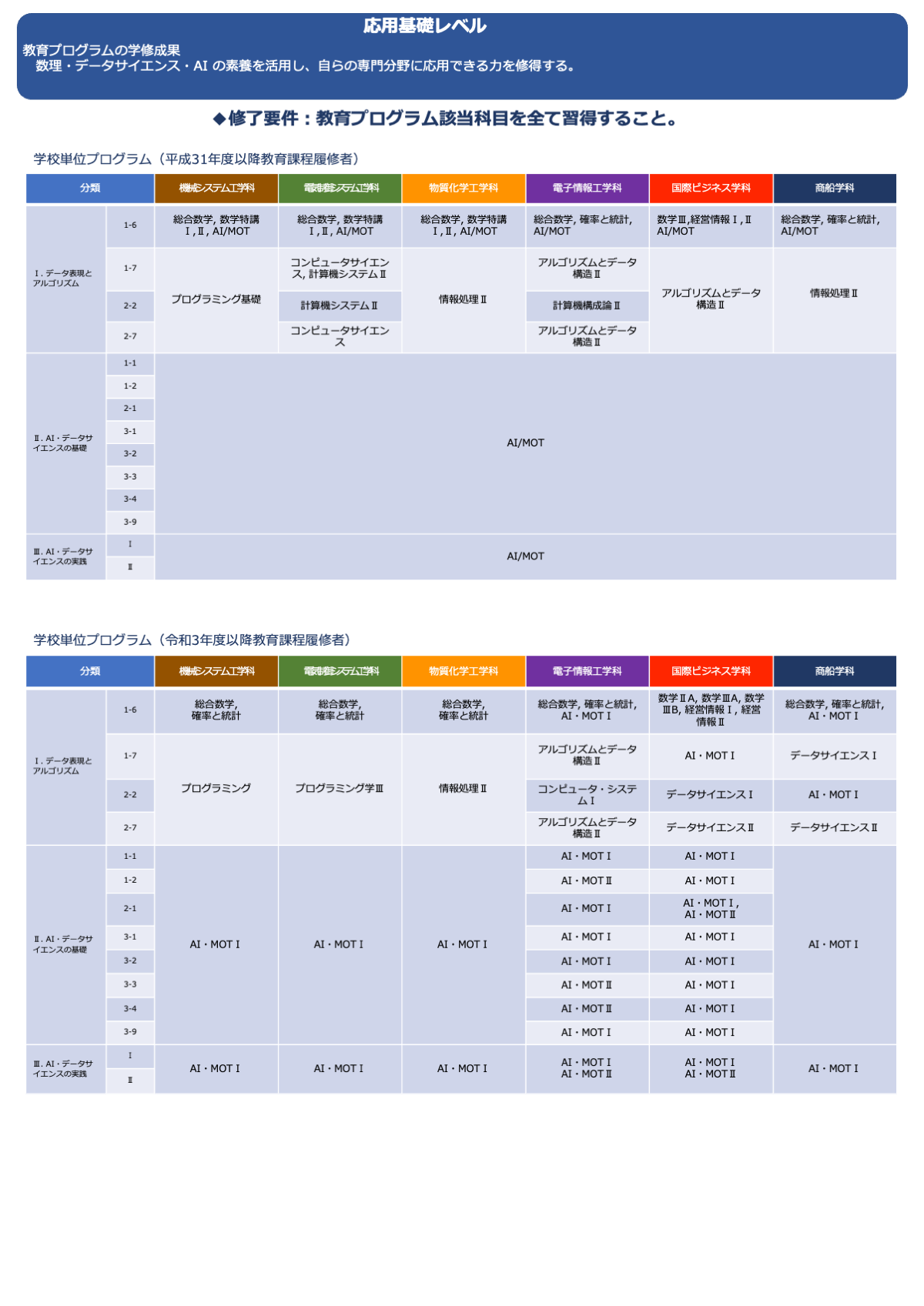 数理・データサイエンス・AI教育プログラム認定制度(応用基礎レベル)申請書