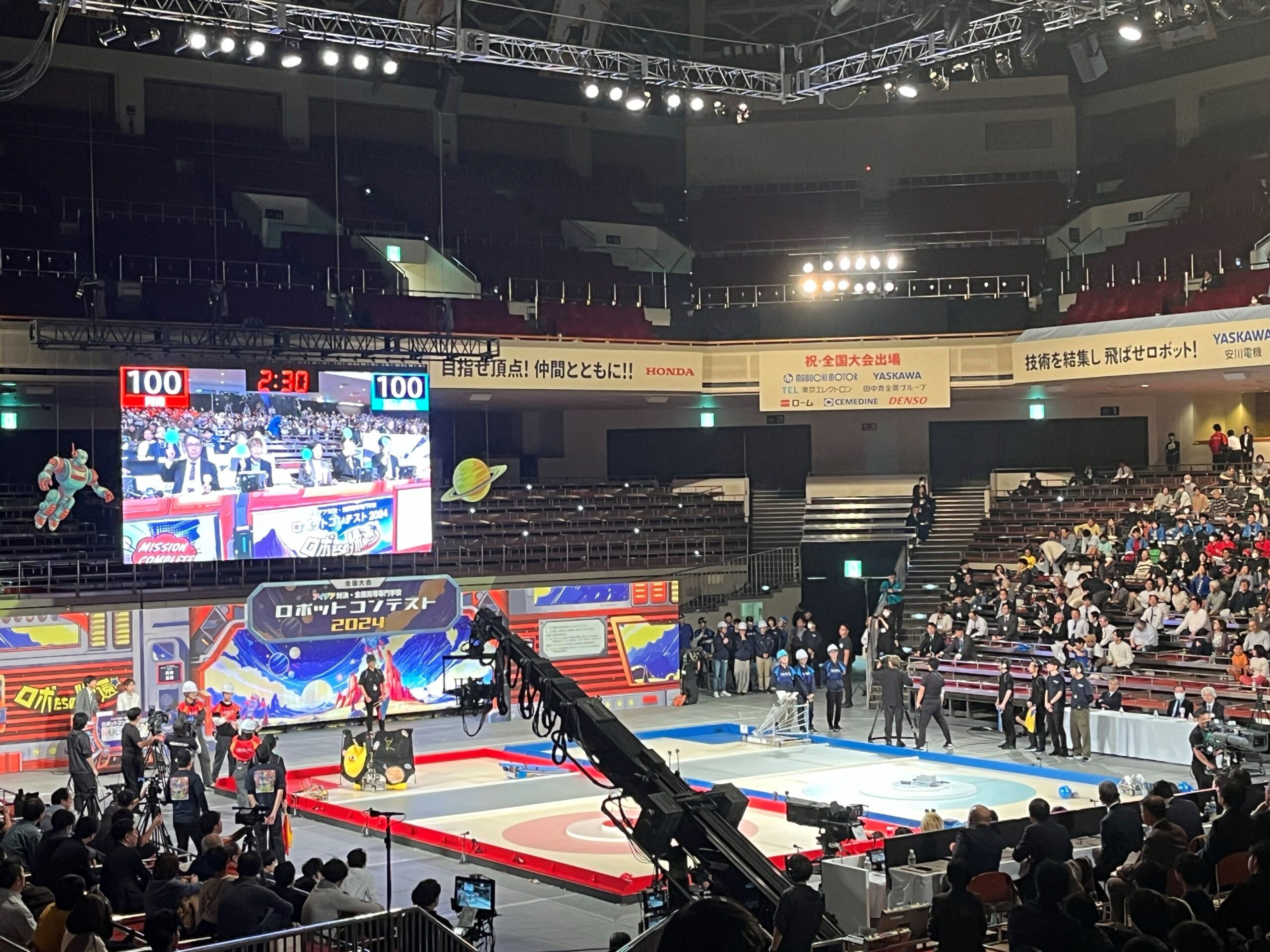 射水キャンパスAチーム「プトレマイオス」が、11月17日(日)に両国国技館(東京都墨田区)開催の「アイデア対決・全国高等専門学校ロボットコンテスト2024全国大会」に東海北陸地区大会の優勝チームとして出場し、各地区代表の総勢26チーム中、1回戦、2回戦と勝利し、ベスト8となりました。